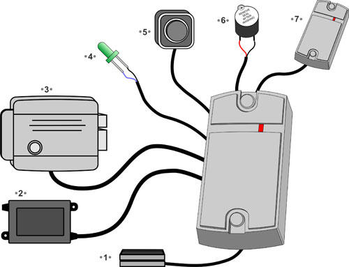 - Внимание! Во избежание пробоя выходного транзистора не рекомендуется использовать контроллер с электромагнитными замками, имеющими встроенный колебательный контур