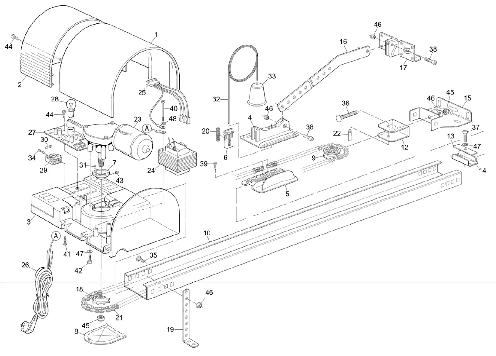 - Двигатель 24В с системой электронных концевых выключателей;